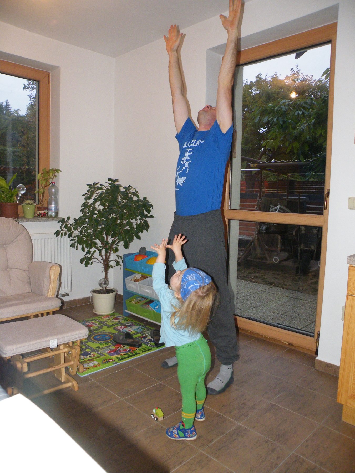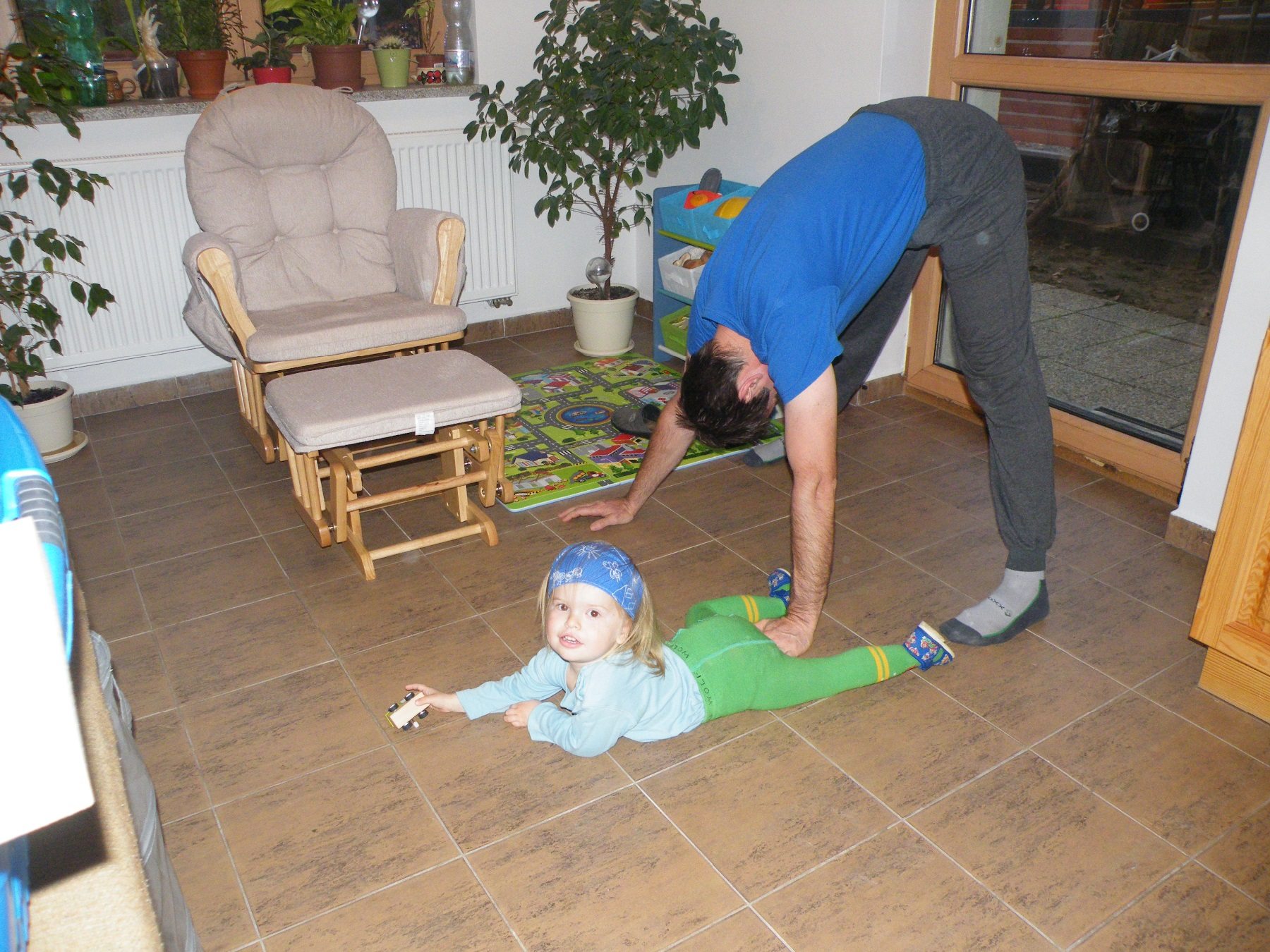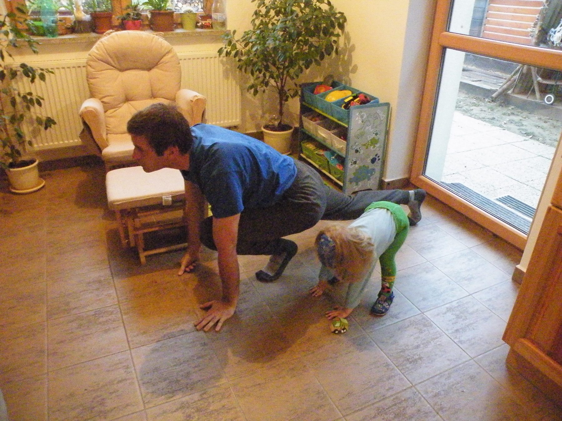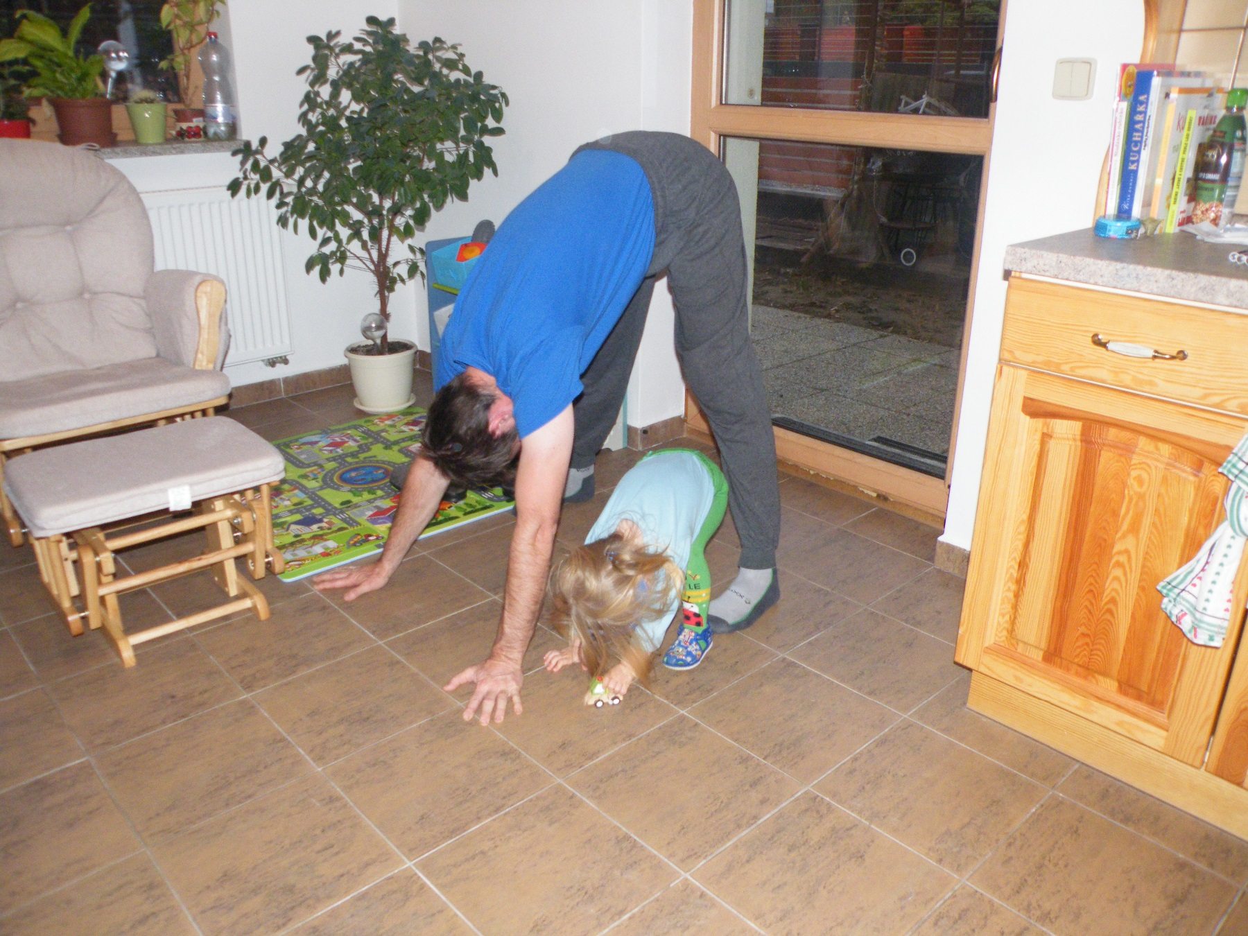 Cvičím s tátou "Pozdrav slunci" :)