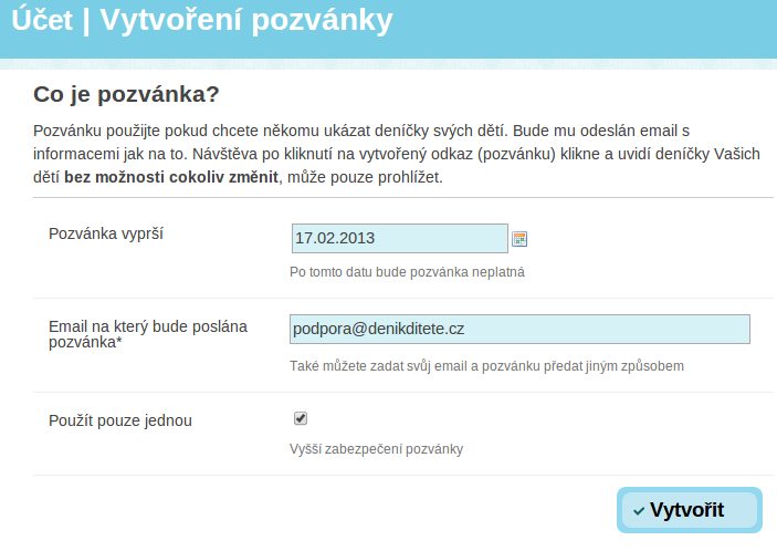 Pozvánkou umožníte svým blízkým prohlédnout si fotografie a deníček vašeho dítěte. Deníčky budou zobrazeny pouze ke čtení a pozvaní nebudou moci nic měnit.